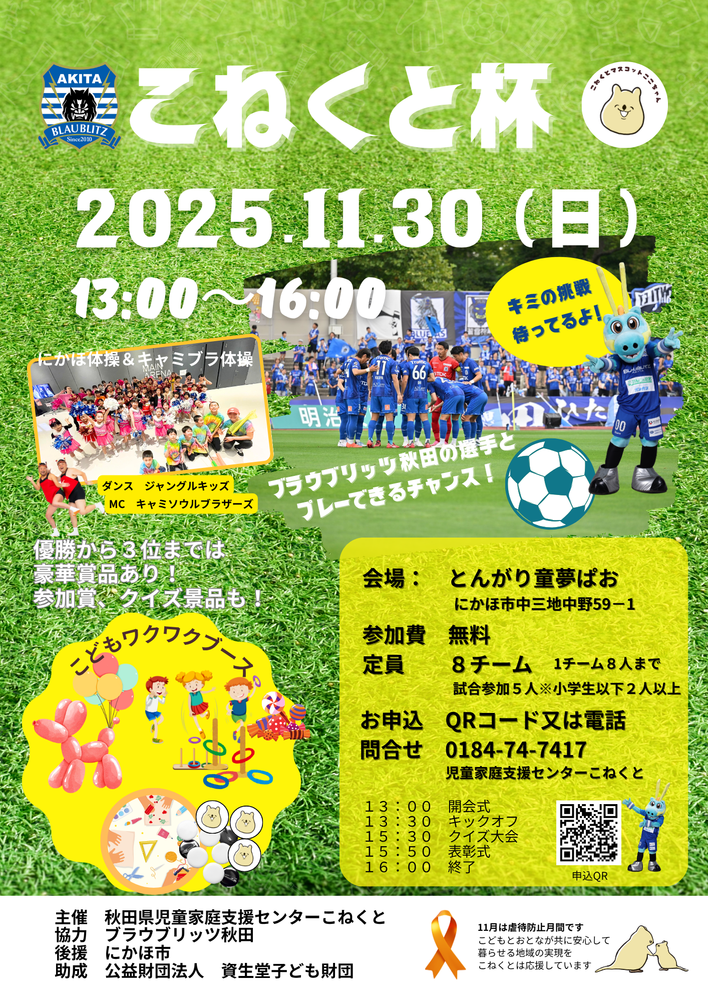 11月30日(日)に『こねくと杯2025』を「とんがり童夢ぱお」で開催しました。 時折激しく雨が降る中、約110名の方々にご参加いただき、「こねくと杯2025」 […]